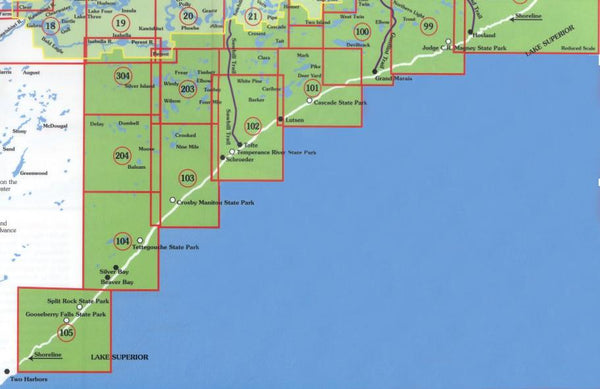 Create an AccountThe maps of the North Shore/Superior National Forest offer multiple use wilderness opportunities. They show hiking, biking, ski and some snowmobile trails and many other outdoor facilities. There are many beautiful State Parks which offer varied facilities from hike-in to drive-in camping, as well as wayside conveniences. Also shown on these maps are the North Shore State Trail and the Superior Hiking Trail.